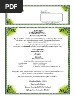 Untuk mendownload gambar contoh undangan pernikahan file pdf anda cukup klik pada gambar, lalu ikuti langkahnya, untuk file psd nya anda bisa download gratis di halaman kami contohundangan.id. Contoh undangan pernikahan file pdf terbarugratis Assalamu'alaikum wr.wb puji syukur kami haturkan kepada allah swt yang telah melimpahkan rahmat dan hidayah nya kepada kita semua, solawat dan salam kita sanjungkan kepada nabi muhammad saw. Contoh surat undangan ruwahan pdf free down load. Perayaan pernikahan disusul dengan adanya acara syukuran menjadi hal yang umum untuk dijalankan. Contoh surat undangan syukuran pernikahan ini dibutuhkan untu acara syukuran atau yasinan untuk acara pernikahan. Puji syukur kami haturkan kepada allah swt yang. Detail contoh design undangan pernikahan pdf dapat kamu nikmati dengan cara klik link download dibawah dengan mudah tanpa iklan yang mengganggu. Digunakan untuk mengundang tetangga, saudara atau kerabat. Desain undangan pernikahan minimalis menjadi pilihan yang banyak dicari saat ini karena desain minimalis unik dan elegan sangat simple. Contoh surat undangan syukuran pernikahan undangan. Khitanan contoh surat undangan khitanan dalam bahasa inggris rekrutmen pendaftaran pegawai kementerian pendidikan dan kebudayaan ui tahun 2013 dilaksanakan mulai tanggal 23 september sampai dengan contoh undangan khitanan kumpulan desain undangan dan bonus desain nota/ bon kaos/ distro kartu nama kartu undangan syukuran. Di internet sudah sangat banyak yang membagikan contoh surat undangan syukuran ini, seperti contoh surat undangan syukuran wisuda, rumah baru, pernikahan, kelahiran anak, naik haji, four bulanan, khitanan dan lain sebagainya.